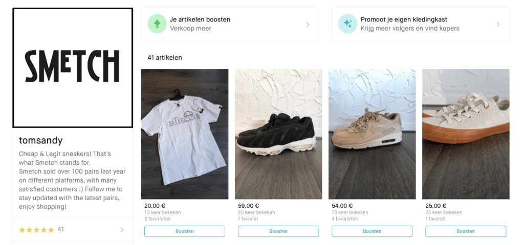 Via Smetch verkoop ik sneakers die ik zelf opknap of voor een goede prijs weet te bemachtigen.